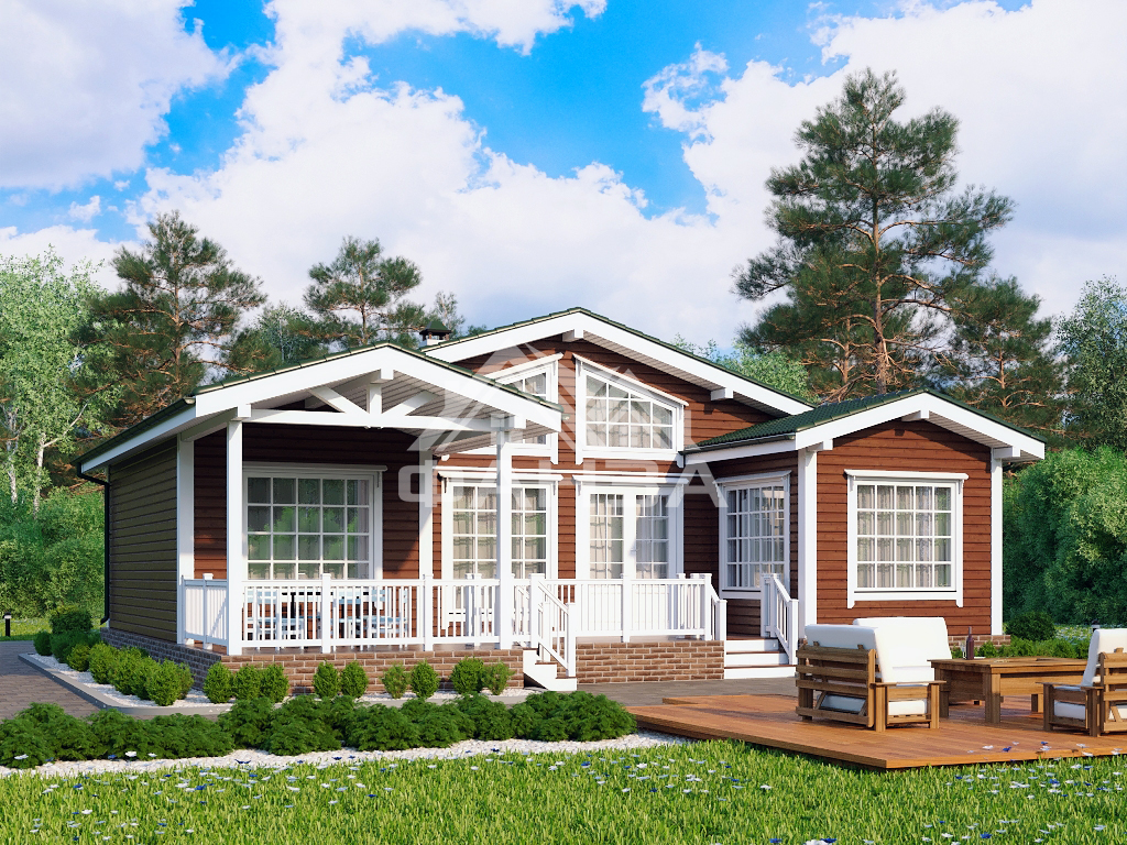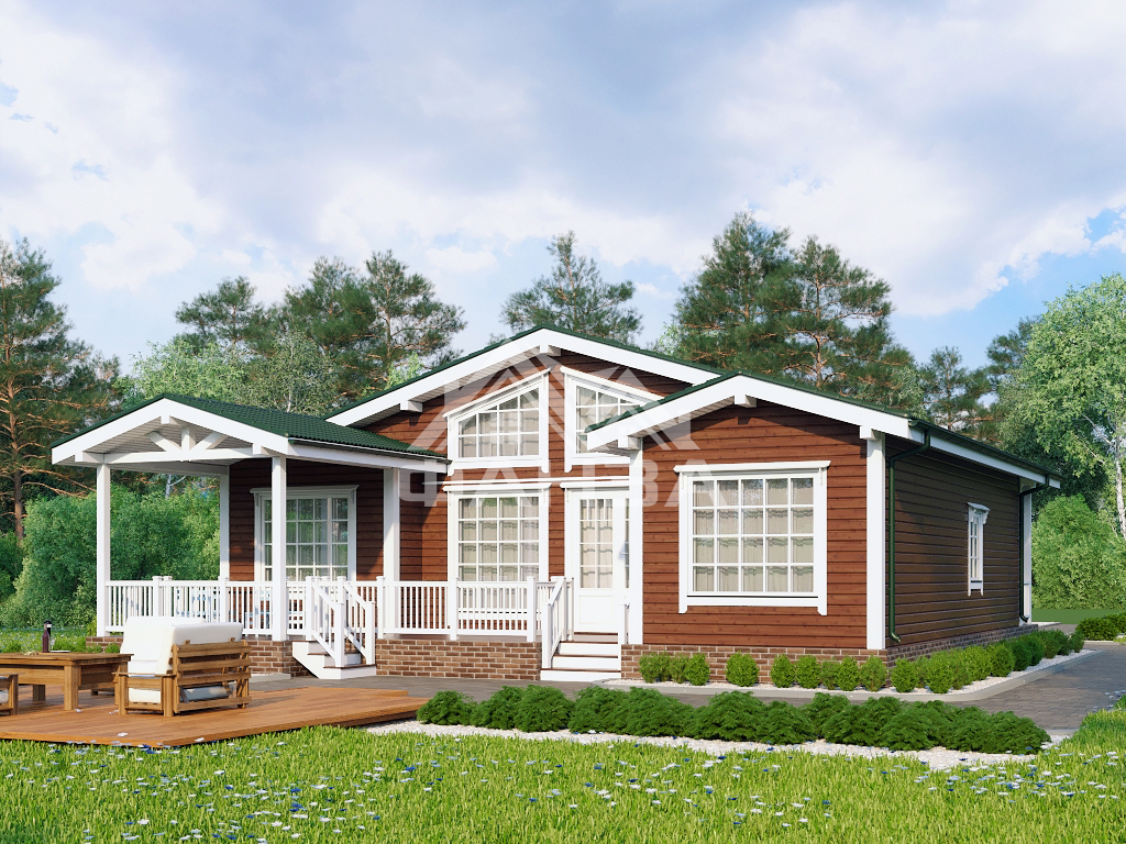 Каркасный дом «Сказка» 11x12 м, 1 этаж